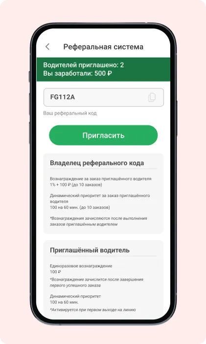 Эффективный способ привлечения водителей: водитель рекомендует службу и получает за это вознаграждение