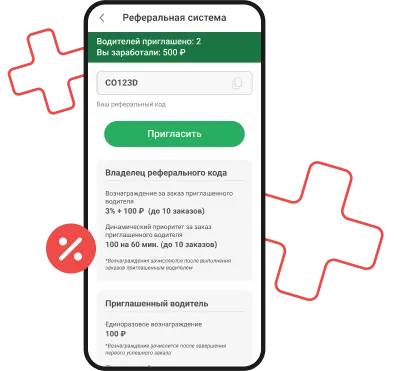 Это функция, которая мотивирует водителей привлекать новых коллег в службу такси. Благодаря поощрениям, система помогает увеличить количество водителей и повышает их лояльность.