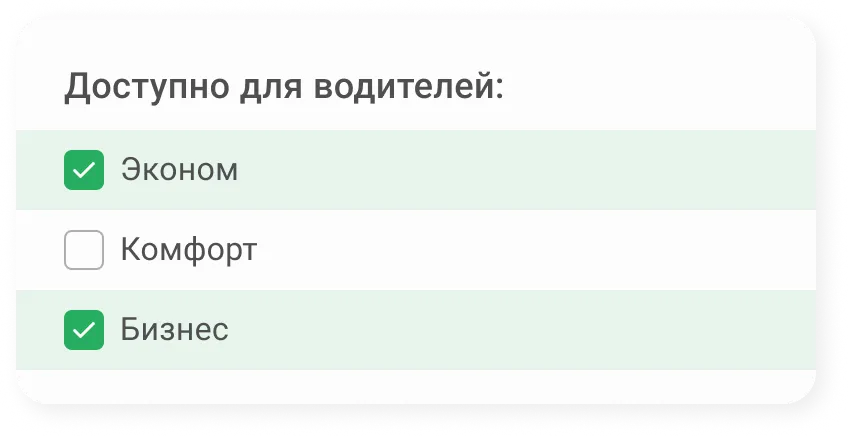 Все условия проверяются автоматически — по типу заказов, времени, дистанции, рейтингу и другим параметрам.