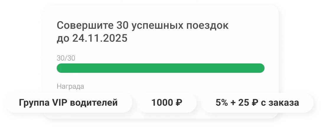 Настраивайте уникальные цели для водителей и поощряйте их за выполнение нужных вам действий, мотивируя водителей совершать больше заказов.