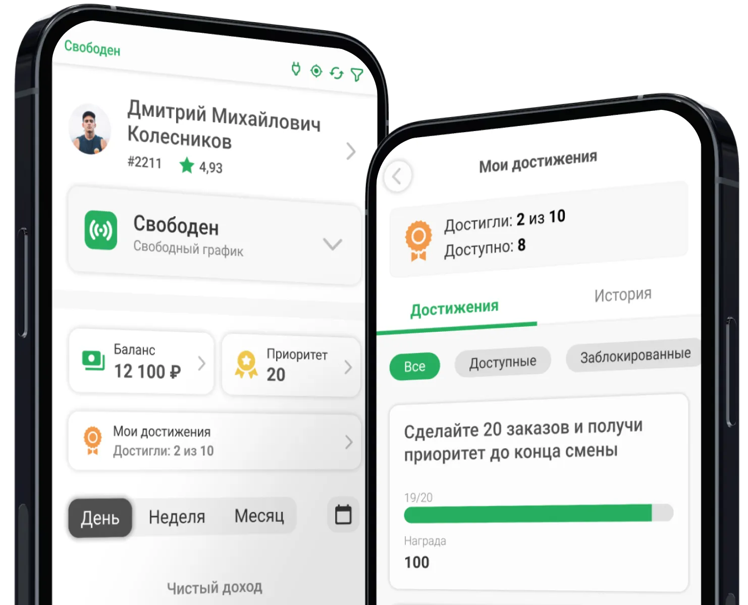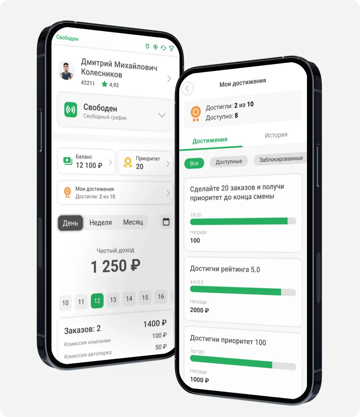Прозрачная система мотивации: водители будут видеть все доступные достижения с четкими условиями выполнения, смогут отслеживать прогресс в реальном времени и мгновенно получать уведомления о выполнении цели и получении награды.